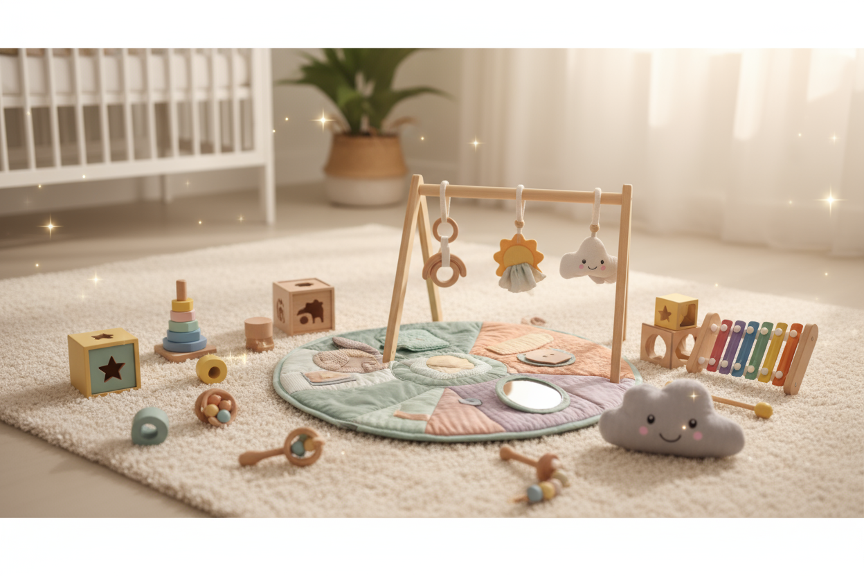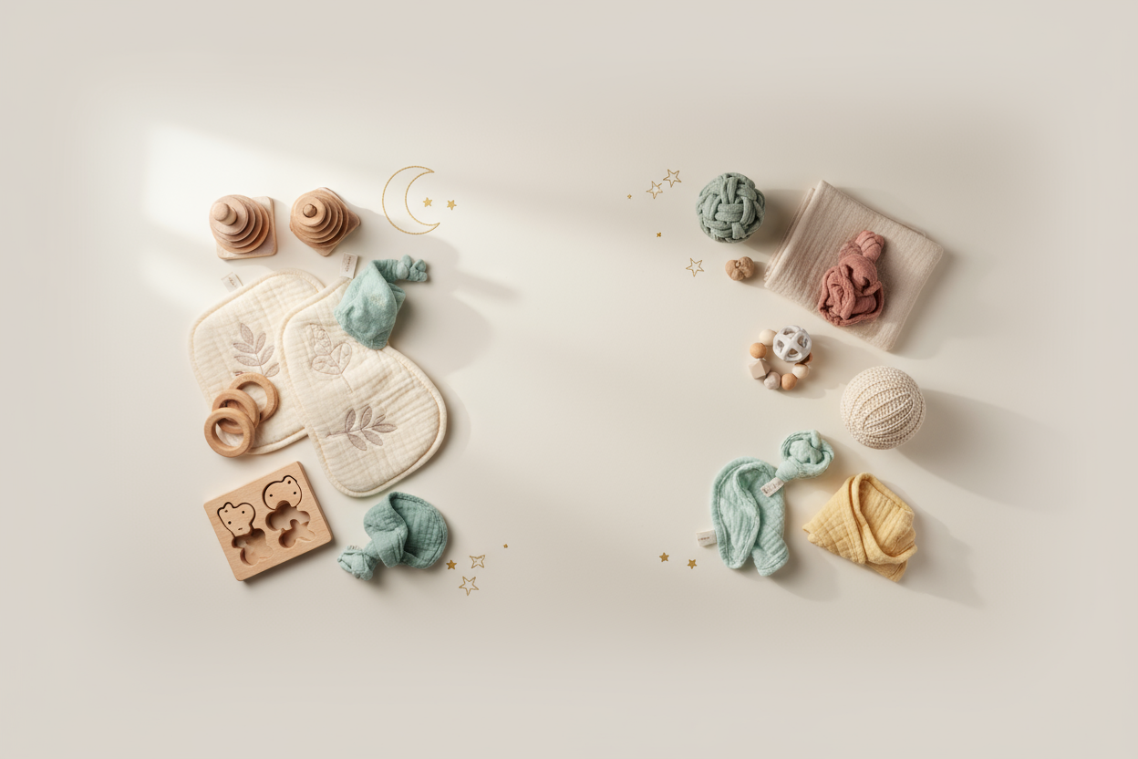 Hochets et Jouets Sensoriels pour Bébé – Bois, Silicone & Textures d’éveil