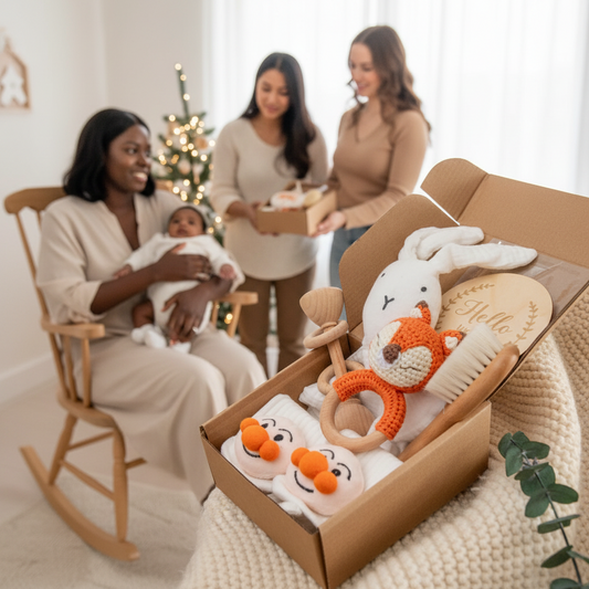 Coffret Cadeau Naissance Bébé - Hochet Bois et Mousseline Montessori